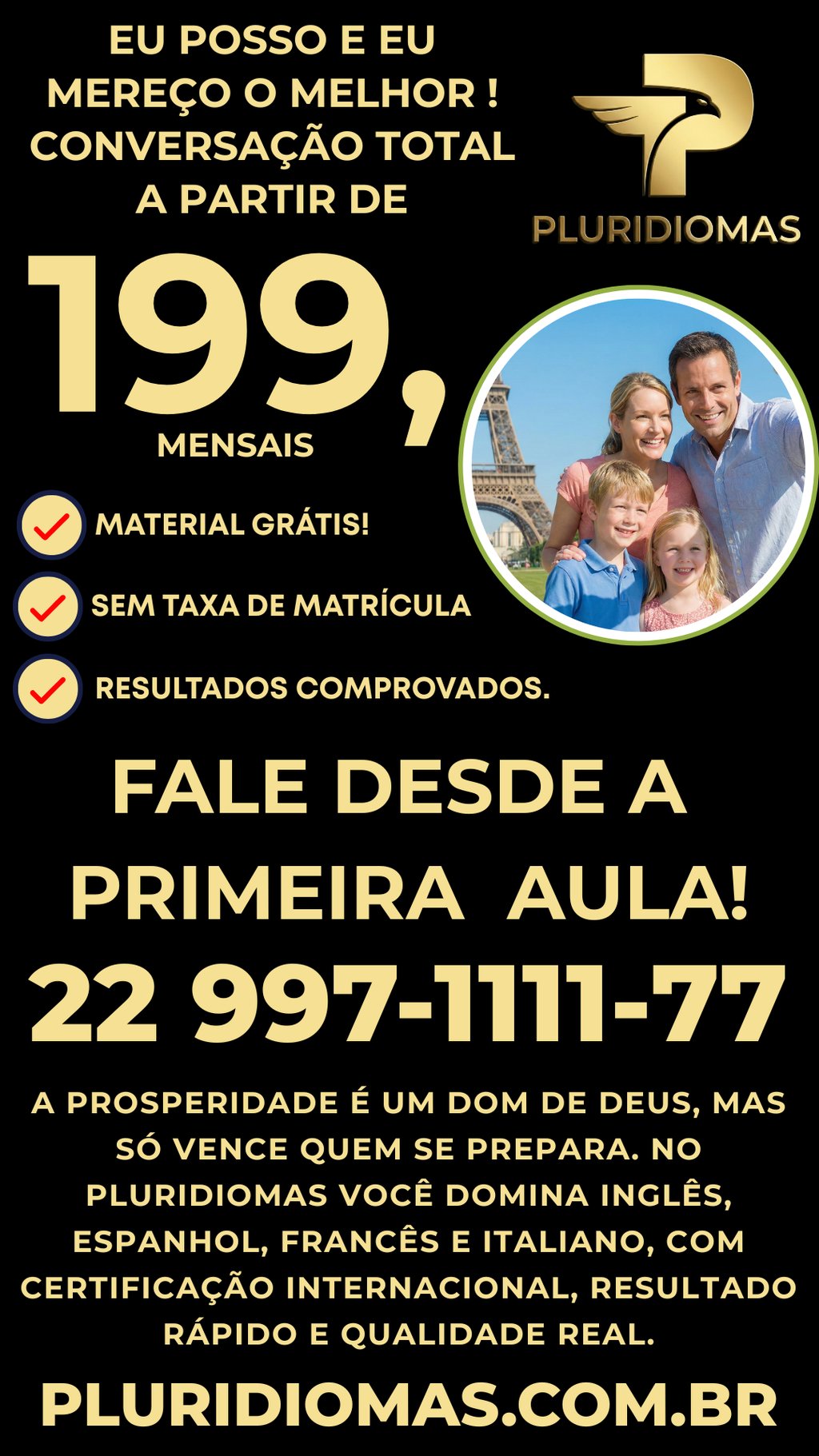 Sabemos o quanto vocês valorizam uma educação séria, que respeite a rotina da casa, a escola regular e, acima de tudo, os princípios cristãos e familiares que orientam a criação dos filhos. O Pluridiomas foi pensado exatamente para famílias como a sua: conservadoras, trabalhadoras e que desejam dar aos filhos ferramentas reais para o futuro sem abrir mão do que é mais importante.